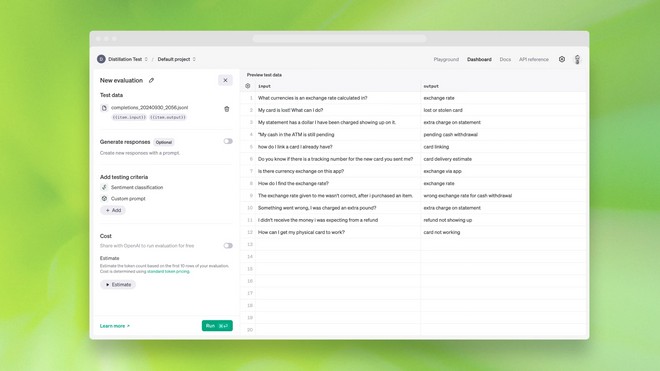 Outra ferramenta apresentada é a “Model Distillation” (“destilação de modelos”, em tradução literal), que oferece aos desenvolvedores uma maneira de personalizar modelos de linguagem compactos, como o GPT-4o mini, usando saídas de modelos mais avançados, como GPT-4o e o1-preview, para resultados mais precisos ao executar modelos mais simples.
