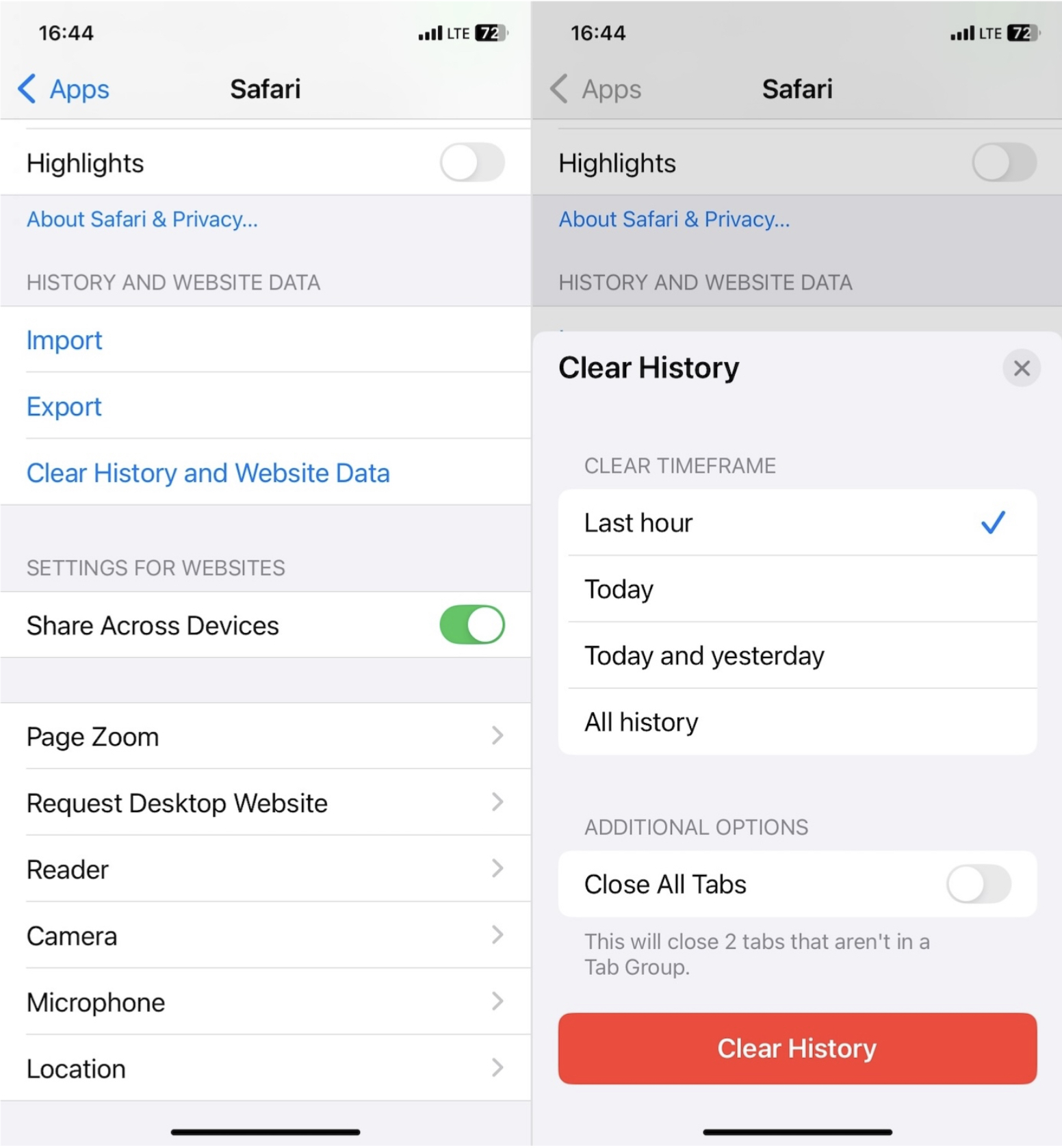 - Clique em Limpar histórico e dados do site.